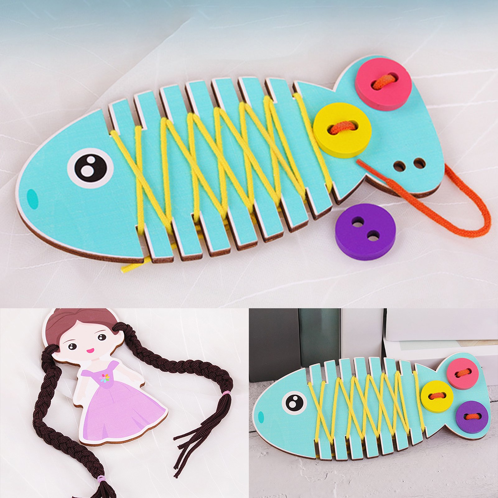 Lubelski Kids Cartoon Fish Button Thread Doll Girl Faux Hair Braid Practicing Board Game Walmart Canada